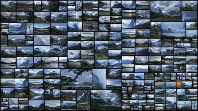 A mystical lake surrounded by ominous clouds and dark mountains. This very atmospheric set was shot at dawn on a cool, foggy morning. Featuring lagoon environment vegetation, ground textures and waterfalls from the mountains.