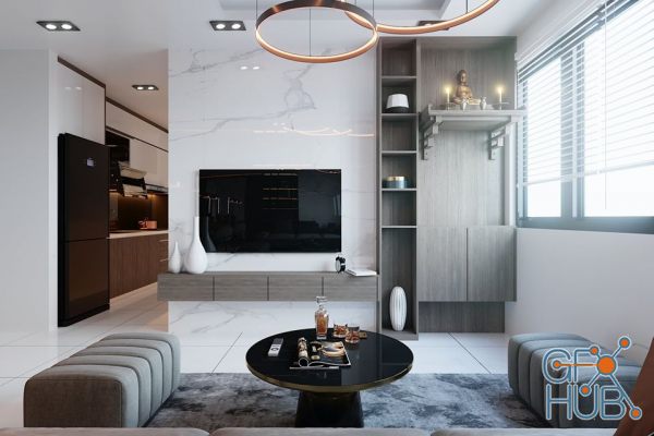 3D-model – Interior Kitchen- Livingroom 67 By DucHien