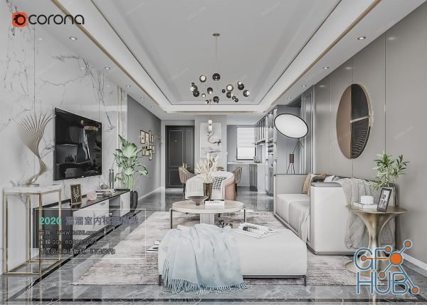 3D-model – Modern Style Living Room 2020 A085 (Corona)
