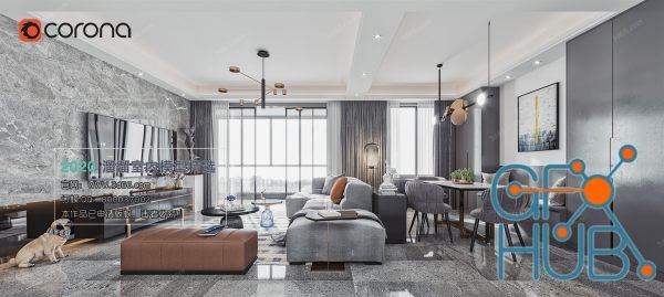 3D-model – Modern Style Living Room 2020 A102 (Corona)