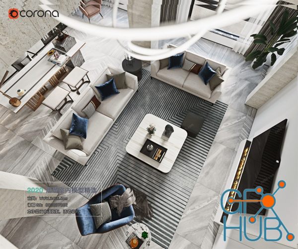 3D-model – Modern Style Living Room 2020 A104 (Corona)