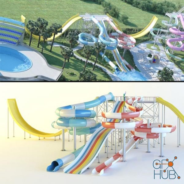 3D-model – Water Slides Wave Slide, Black Hole, Wide Slide, Raing Slide