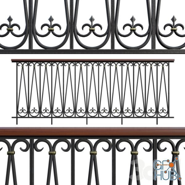 3D-model – Forged railing with a wooden handrail