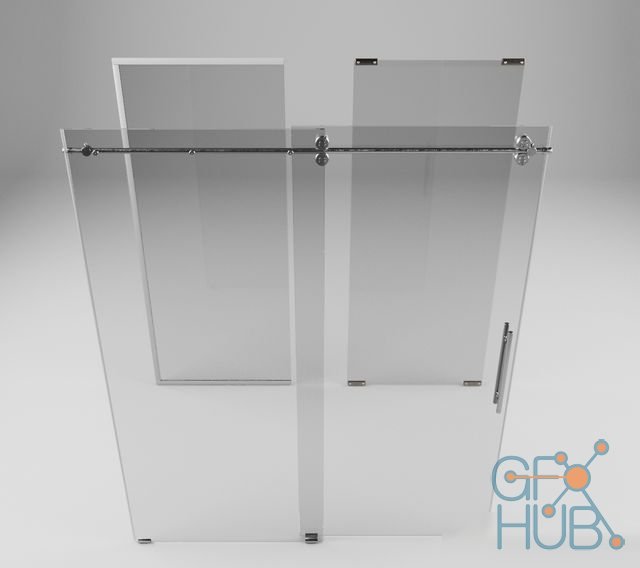 Glass shower part Enigma. The width of the partition is 1700 mm. The height is 2000 mm. The set includes static glass in the profile and on the clamps. The glasses are slightly stained. In the archive, individual items in the format of obj.
