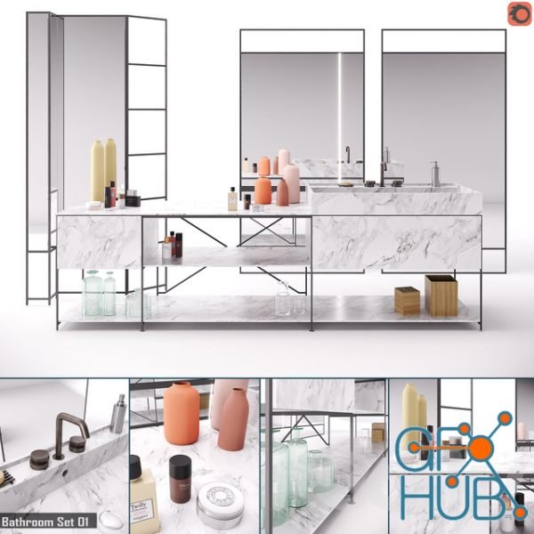 3D-model – RIG Modules - Bathroom with Decor Set 01