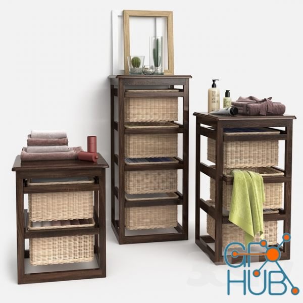 3D-model – Bathroom furniture with baskets model LAUNDRY wenge