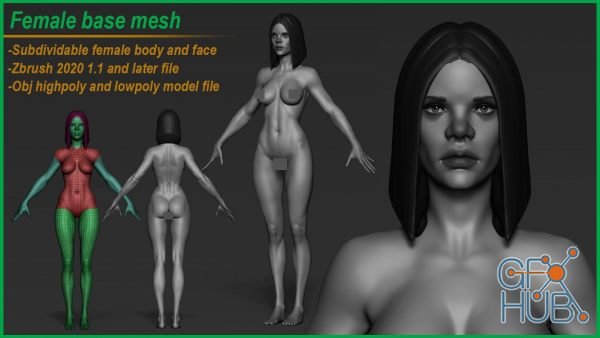 3D-model – Female character basemesh (Woman body)