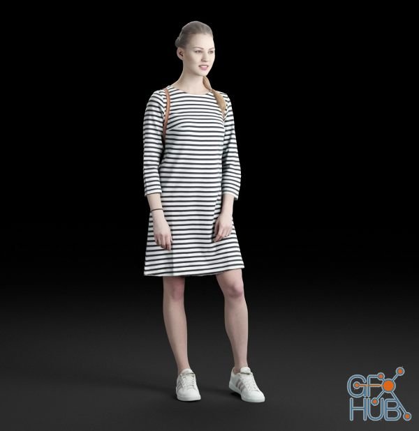3D-model – A young girl is standing in a striped dress (3D-Scan)