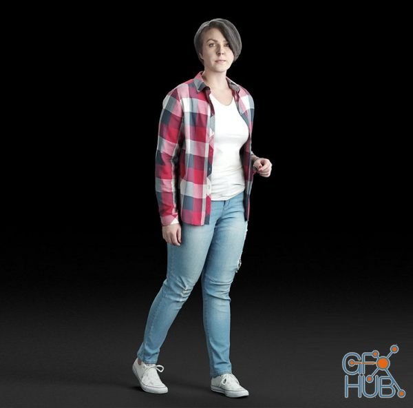 3D-model – A woman stands in jeans and a plaid shirt (3D-Scan)
