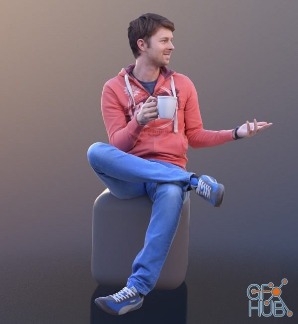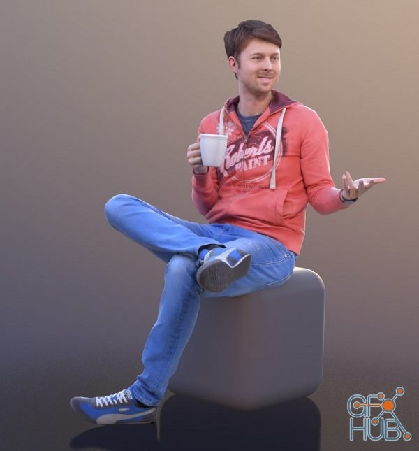 3D-model – John sits with a mug and communicates (3D-Scan)