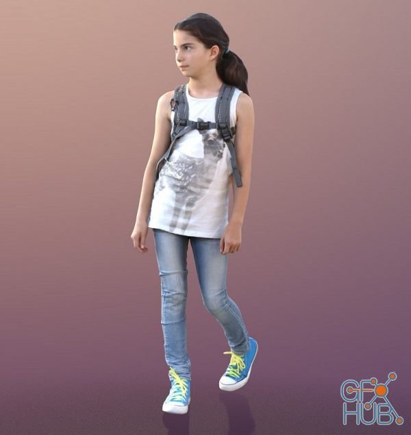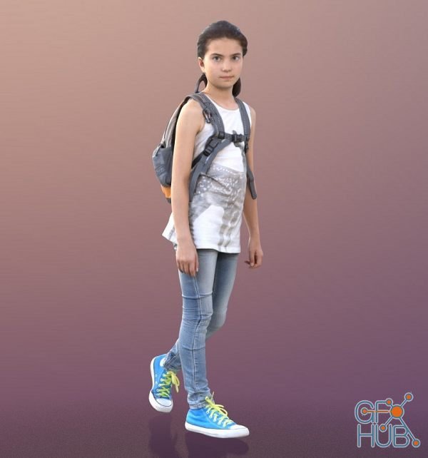 3D-model – Young girl Sophie with a backpack and sneakers (3D-Scan)