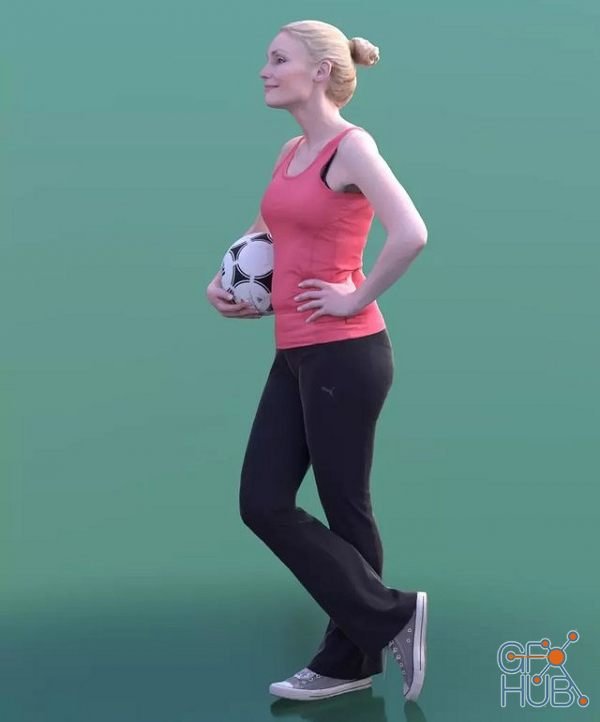 3D-model – Sporty woman Kim with a soccer ball (3D-Scan)