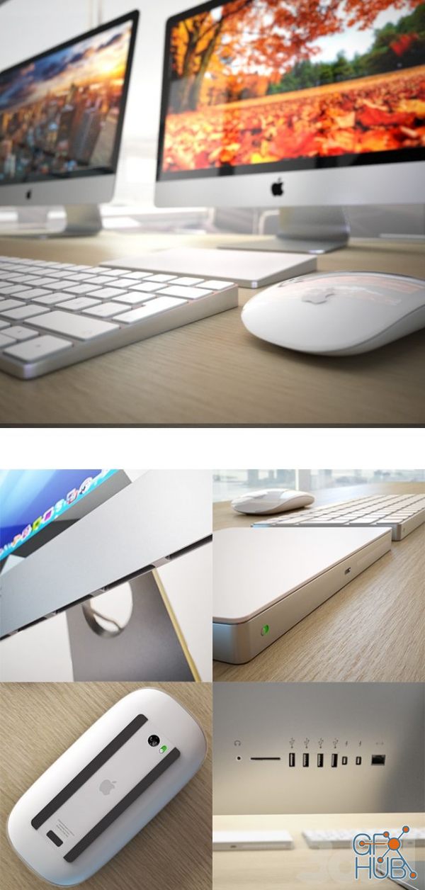 3D-model – Apple iMac 2015 4k 5k RETINA with Accessories