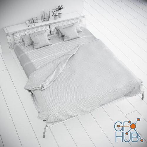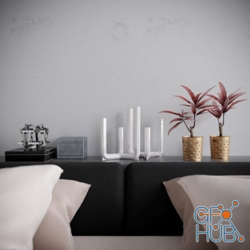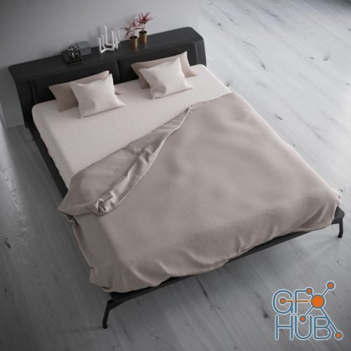 Modern bed L40 bed by Cassina, designer Rodolfo Dordoni. Furniture: H&M Gold small metal pot and IKEA candlestick. Format of 3d model: 3ds max 2014. Shader: Corona renderer. Textures included.
