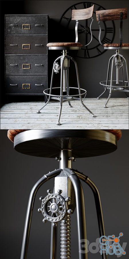 Industrial Clock House Stool by where saints go (England) height 77 cm seat diameter 38 cm