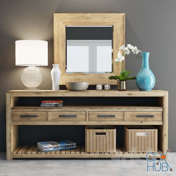 3D-model – Hooker Roslyn Country Table With Accessories Set