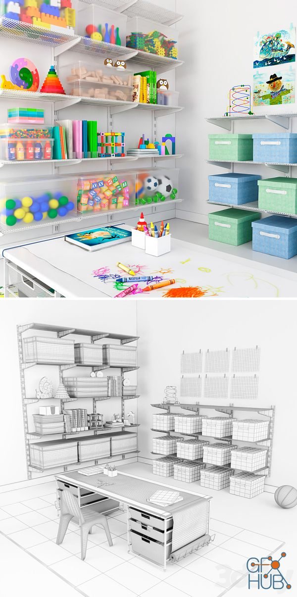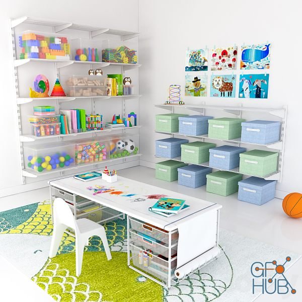 3D-model – Storage system for the childrens room Elfa