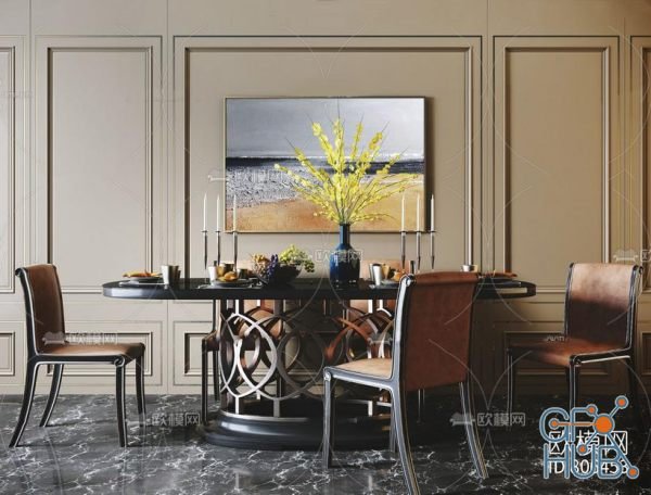 3D-model – Table and chairs furniture set 20