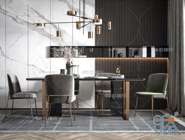 3D-model – Table and chairs furniture set 21