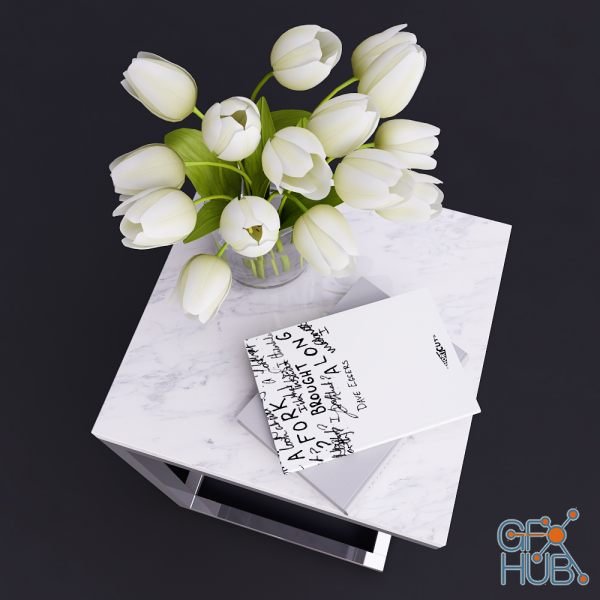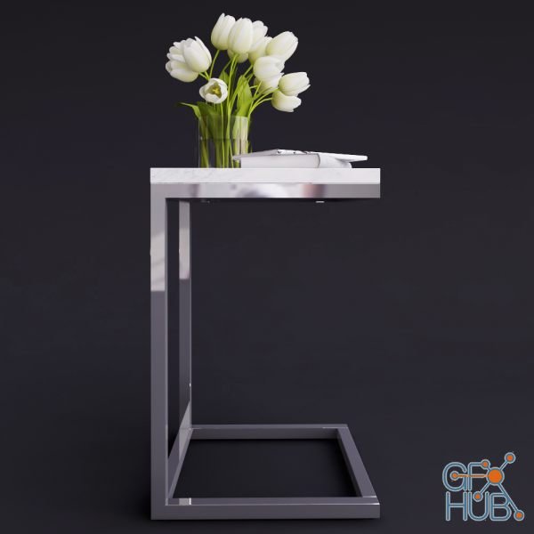 3D-model – Pottery Barn Bryn Marble Top C Table with decor