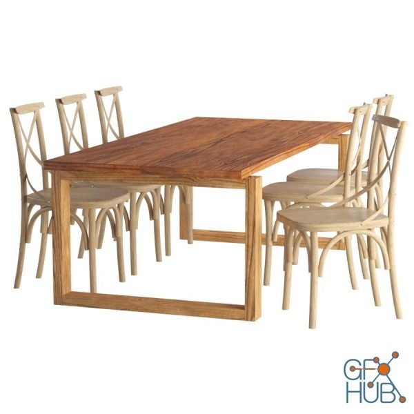 3D-model – Odger Table And 6 Teak Cross Back Dining Chair