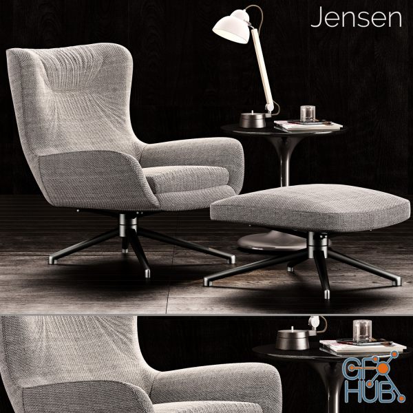3D-model – Minotti Jensen Armchair, table, ottoman