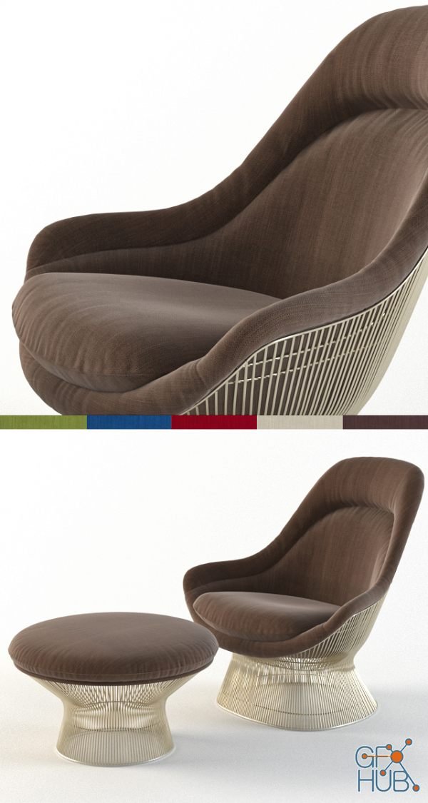 3D-model – Warren Platner Easy Chair, Knoll, ottoman
