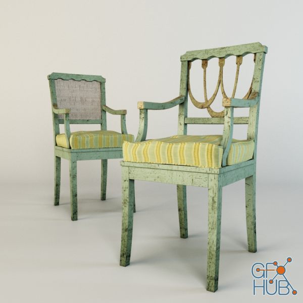 3D-model – 2 chairs Provence, with a patterned wooden back and rattan mesh