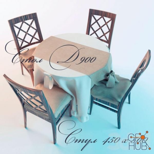 3D-model – Table and chairs (fabric, wood)