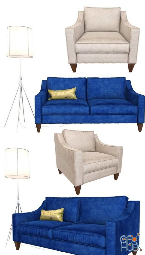 3D-model – Paidge sofa Paidge chair and Adjustable Metal Floor Lamp