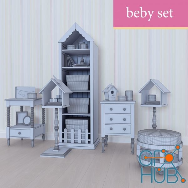 3D-model – A set of furniture for the nursery (sideboards, whatnot, pouf, decor)