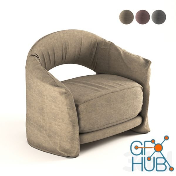 3D-model – Brown armchair with fabric material in 3 colors (free)