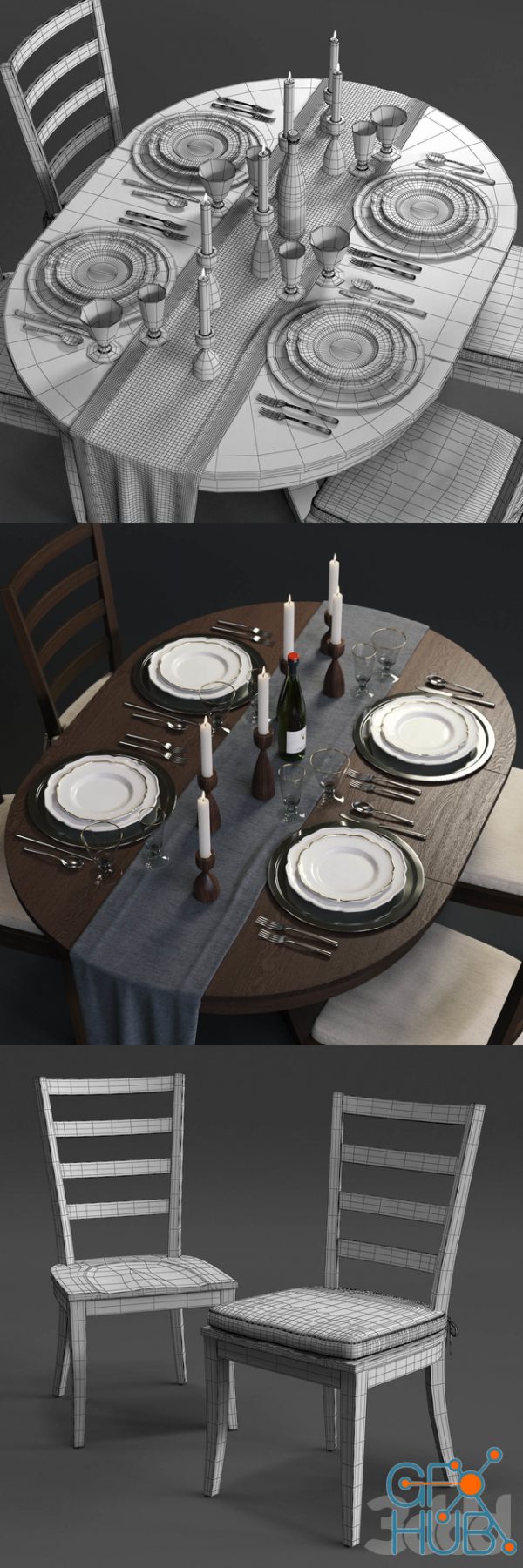 3D-model – C&B Harper Chair and Avalon Table
