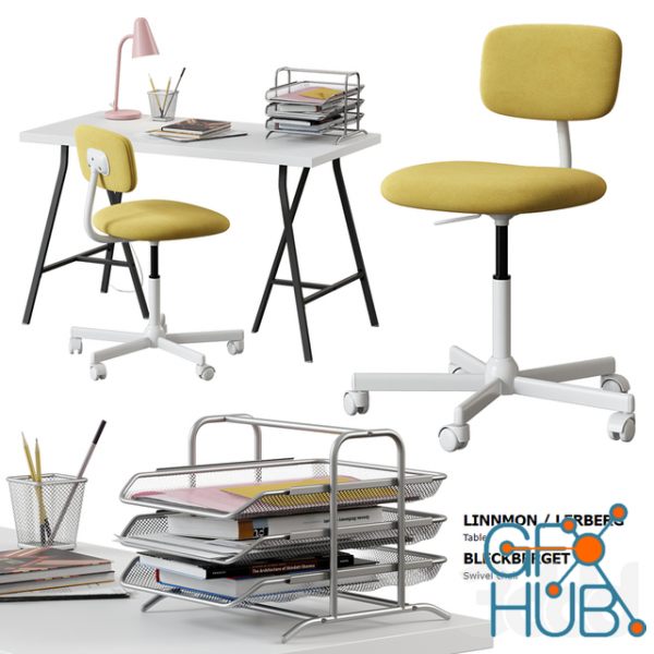 3D-model – Ikea Linnmon - Lerberg Table + Bleckberget Chair