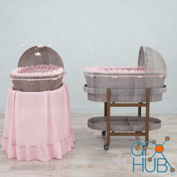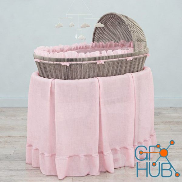 3D-model – RH Heirloom wicker bassinet & mattres