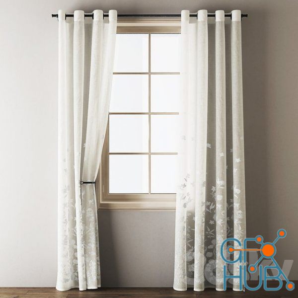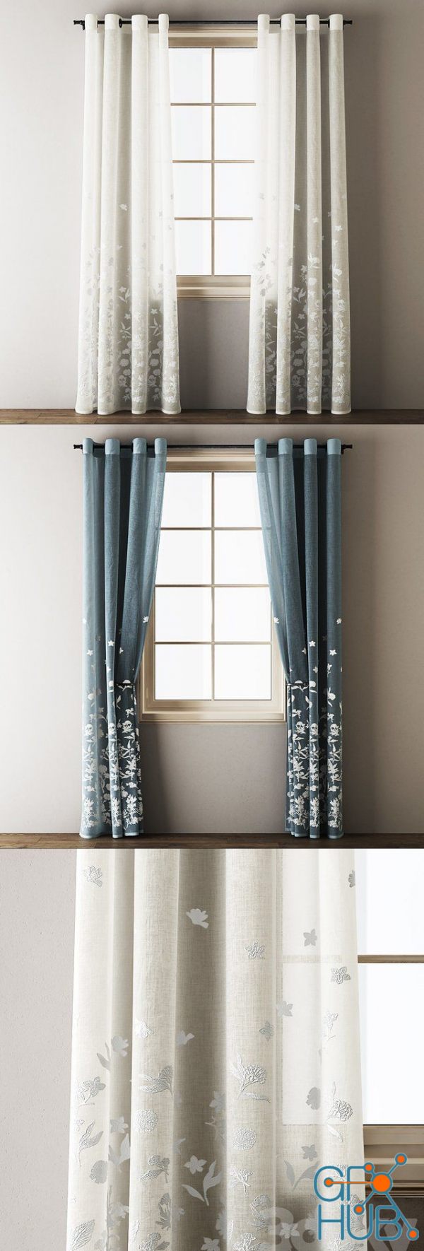 3D-model – Floral Embroidered Linen Eyelet Curtains