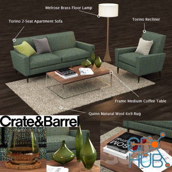 3D-model – Crate and Barrel Torino Apartment Sofa