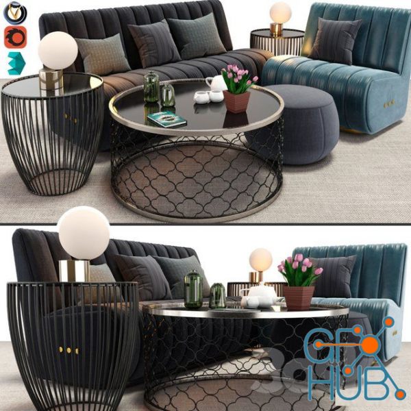 3D-model – Sophia sofa and armchair set