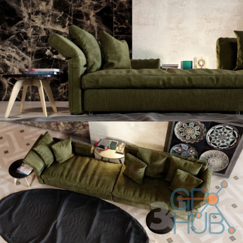 Collar sofa Minotti - Hi-Poly 3d-model.