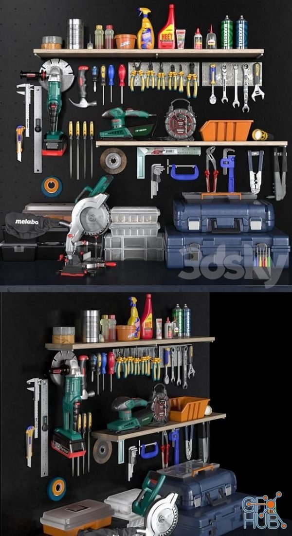 3D-model – Garage tools set 2