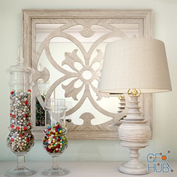 3D-model – Decoration mirror, lamp, vase with botton