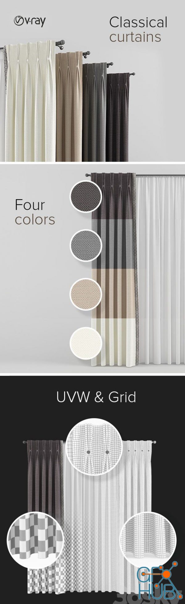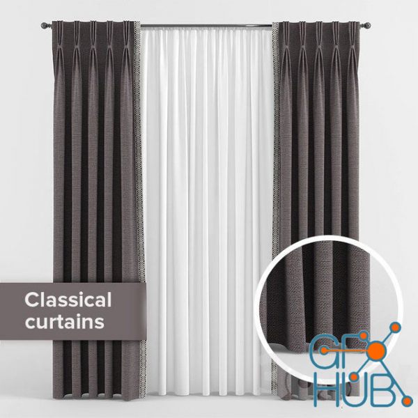 3D-model – Curtains with triple pleats