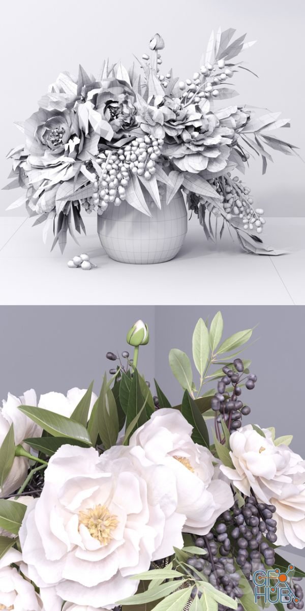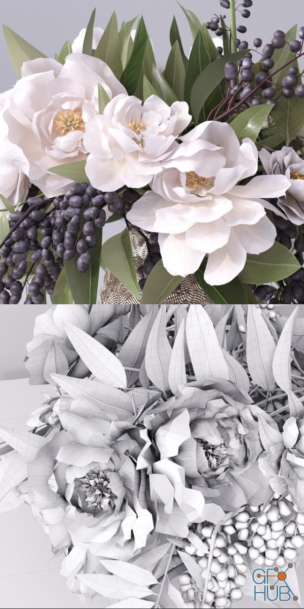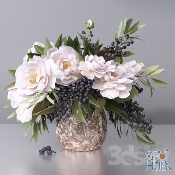 3D-model – Flower Arrangement peony grape leaf twig vase