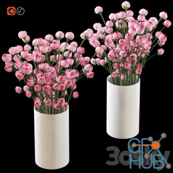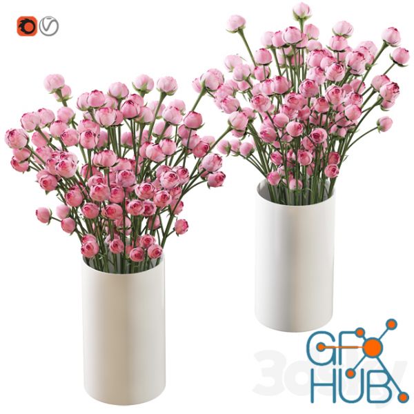 3D-model – Bouquet of small pink shrub roses in a white vase 2