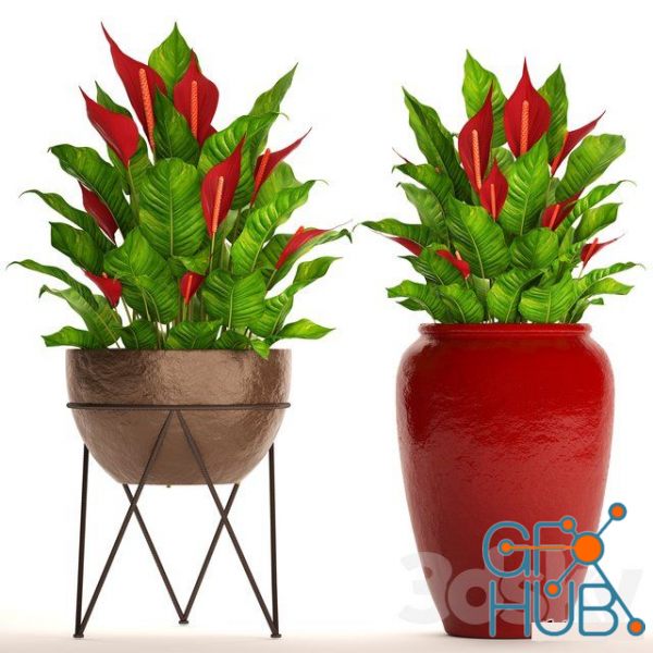 3D-model – A collection of plants in pots. 55 RED