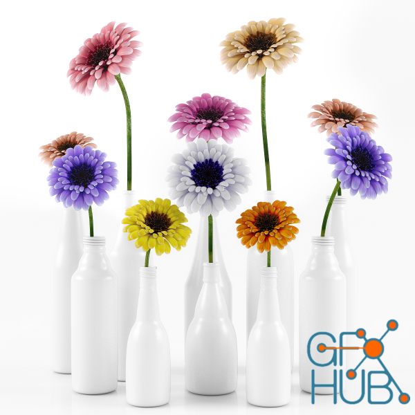 3D-model – GERBERA FLOWER WITH WHITE PLASTIC POTS