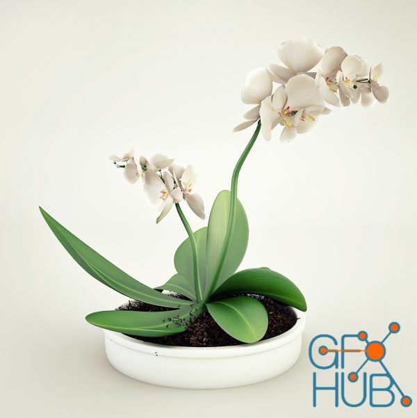 3D-model – White orchids in a pot