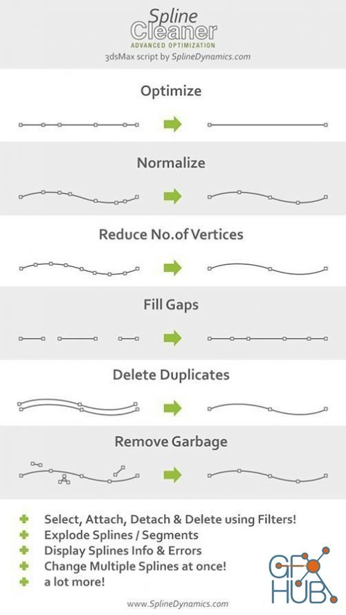 Spline Cleaner is an advanced batch processing tool for cleaning, repairing and managing spline curves in Autodesk 3ds Max.